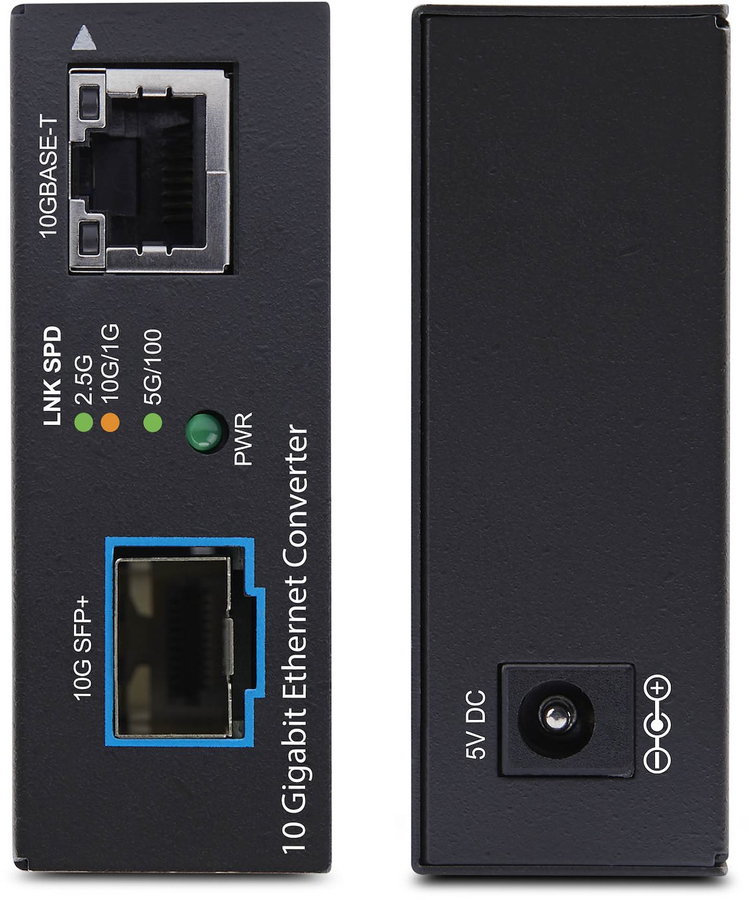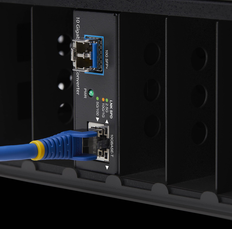 StarTech.com 10GbE Multi-Gigabit Open SFP+ Fiber Media Converter, 10G/5G/2.5G/1G/100M, Copper to 10GBASE-X SFP+, TAA