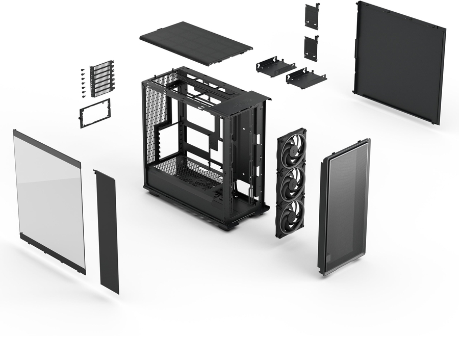 Easily accessible Enjoy a smooth build experience with tool-free access, including a pull-to-remove front panel and a sliding top panel featuring a fabric tab. |