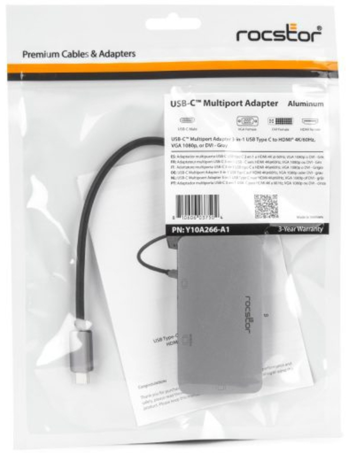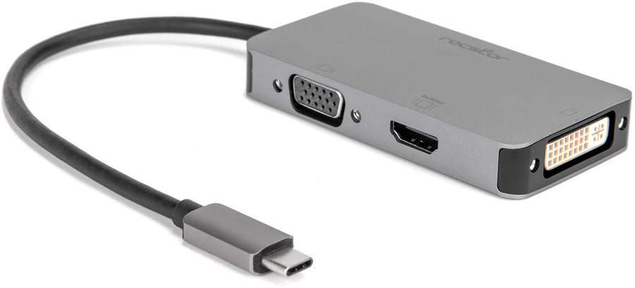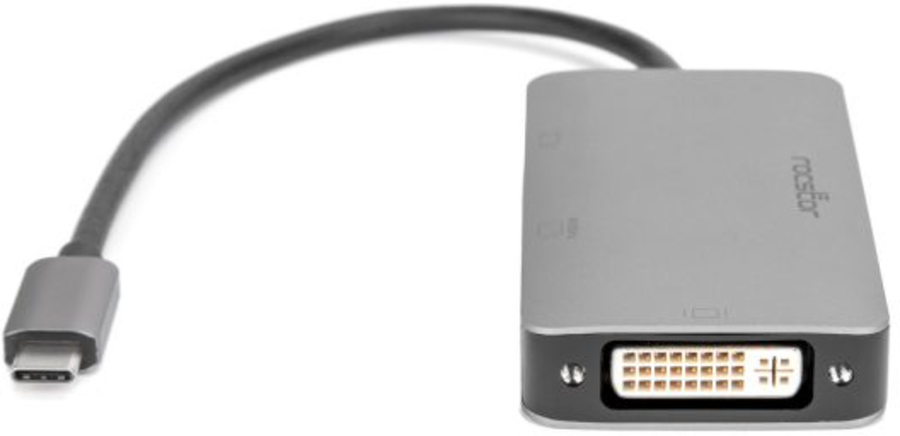 Rocstor Premium USB-C Multiport Video Adapter 3-in-1 - HDMI 4K 60Hz - VGA 1080p - or DVI