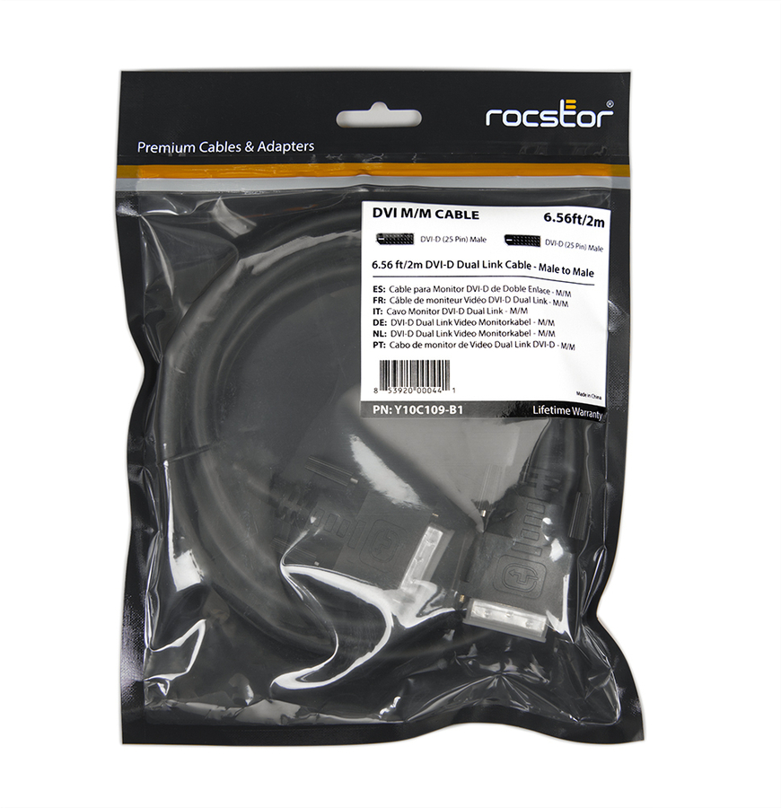 With a maximum resolution of 2560×1600, this cable can support some of the most advanced displays on the market. Rocstor DVI cable is capable of transmission rates of up to 9.9Gbps, and it is compatible with both PC and Mac computers. It meets Digital Display Working Group (DDWG) and Digital Visual Interface (DVI) standards, guaranteeing outstanding performance with all digital, flat-panel, liquid-crystal displays. This professional-grade cable is backed by Rocstor’s lifetime warranty. |