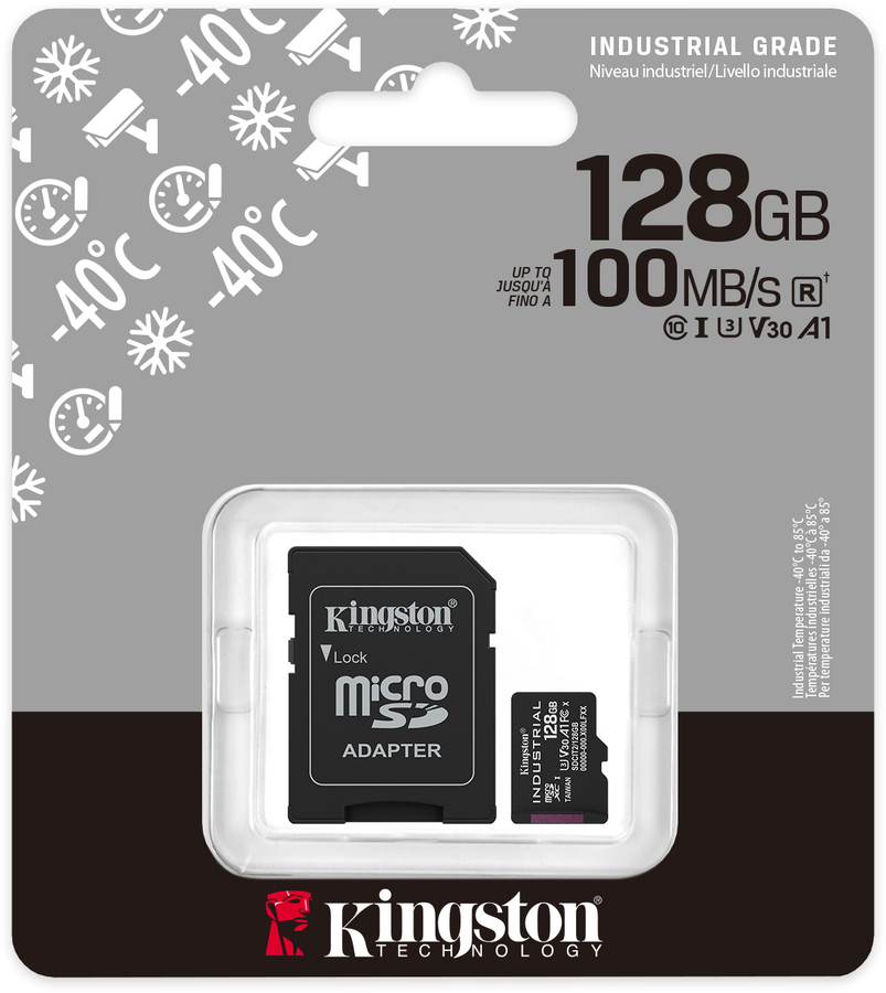 Ideal for Extreme Conditions Kingston’s Industrial Grade microSD card delivers reliable performance in extreme conditions. Built for industrial applications, it offers high endurance, wide temperature resistance, and read speeds up to 100MB/s*. Designed for durability, it ensures consistent operation in harsh environments.