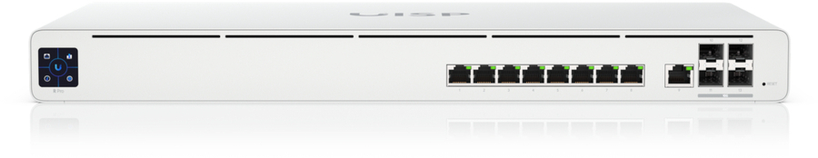 UISP Router Pro, 9x GbE RJ-45, 1x WAN, 4x 10G SFP+, Bluetooth, 1.3" touchscreen LCM display, SGCC steel, polycarbonate/ABS