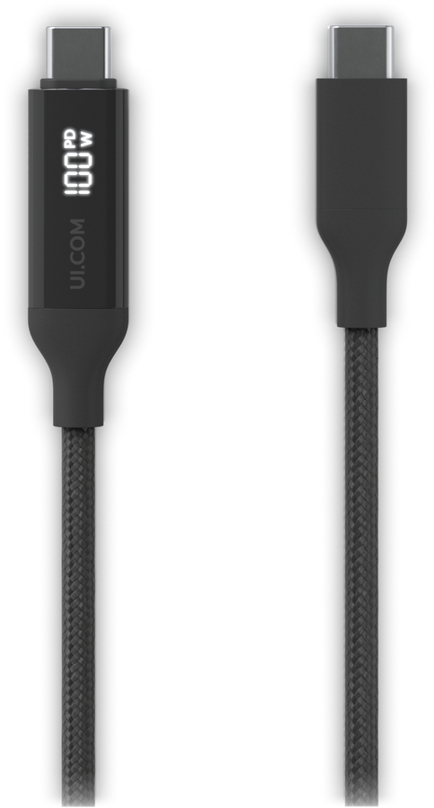 Braided power and data cable with a doublesided charge display. Integrated power meter. 100W max power output. 480 Mbps max data transfer rate 0.3 / 1 / 2 m length only. Durable braided cable design. 480 Mbps max data transfer rate 0.3 / 1 / 2 m length only. Durable braided cable design |