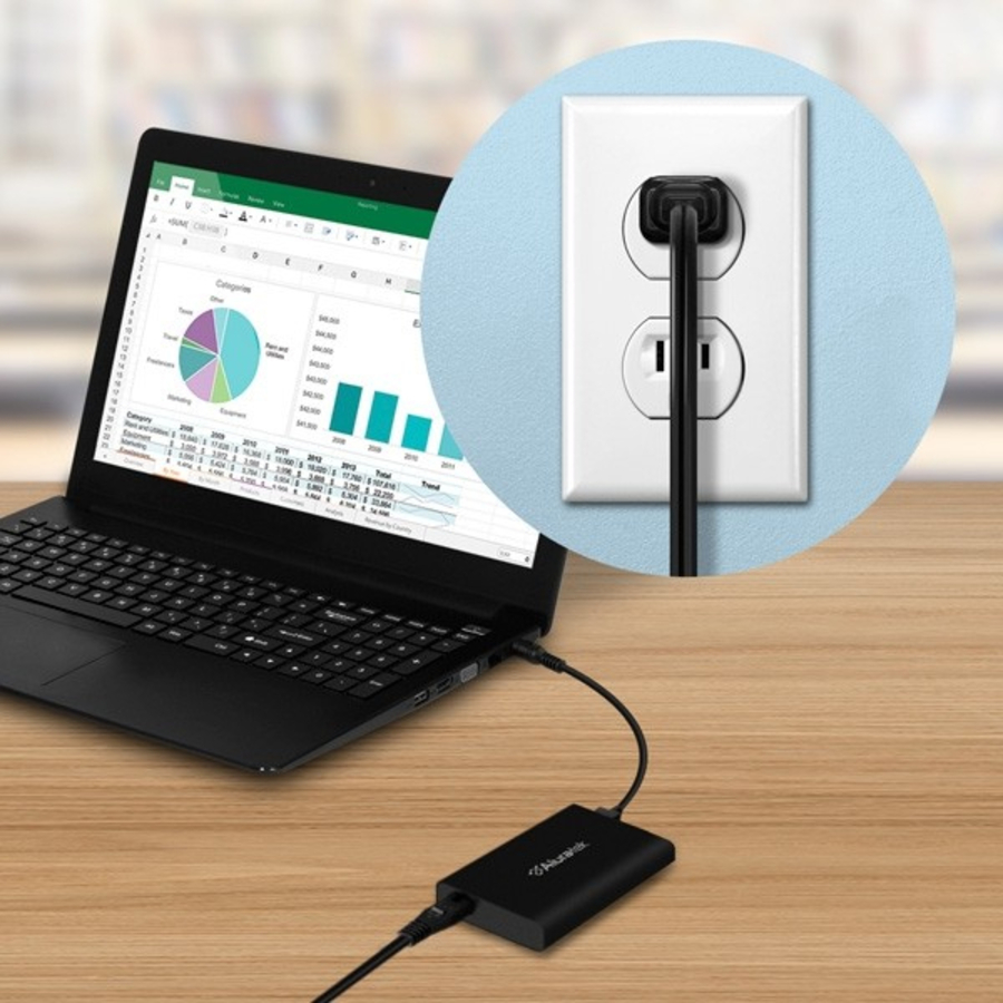 Universally Compatible The Universal AC Adapter with Type-C and QC 3.0 Multi USB Ports is a versatile charging solution for the mobile professional. Included are 8 interchangeable DC charging tips compatible with virtually all major laptop and Microsoft Surface. ANPA03F plugs into any AC power outlet anywhere around the world* and provides a reliable power source to run and charge your computing device's internal battery.