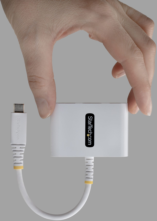 Turn a single USB-C port on a laptop, iPad, or tablet into display, power, and data connectivity with a compact adapter built for standardized IT deployments.