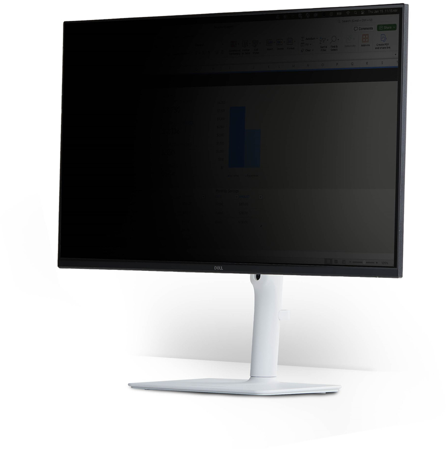 This magnetic monitor privacy screen is compatible with 24" 16:9 aspect ratio monitors, obscuring the view of sensitive on-screen information.