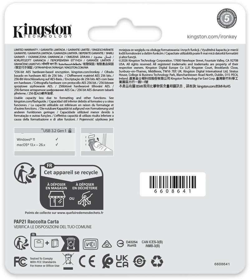 Enterprise-grade hardware-encrypted USB drive FIPS 197 Certified, XTS-AES 256-bit encryption safeguards important data with built-in protection against BadUSB & brute force attacks.