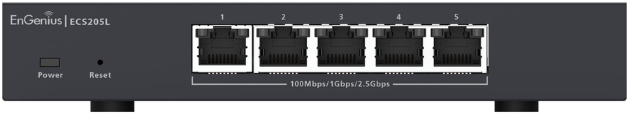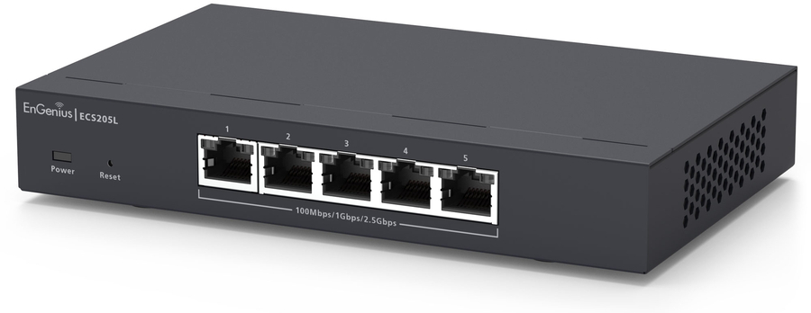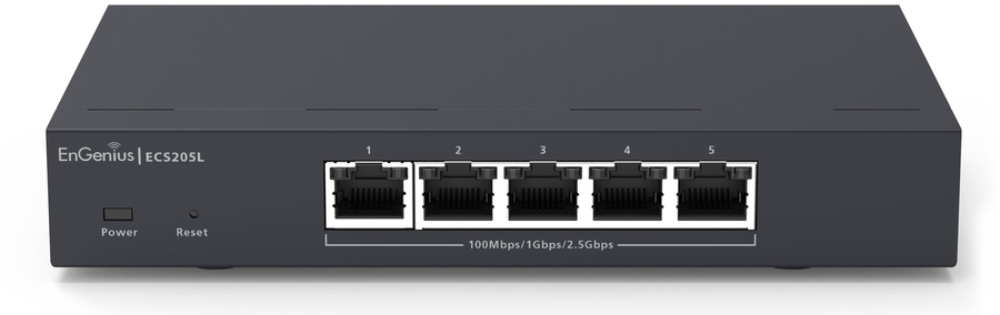 Product Highlights The EnGenius Cloud Lite ECS205L is a small compact 5-port Layer 2 switch supporting 2.5G per port and a 25 Gbps switching capacity for multi-gigabit speeds over existing cable runs to improve overall network performance. This switch offers flexible management options, allowing users to choose between cloud, on-premises, and local management. |