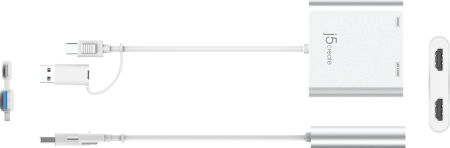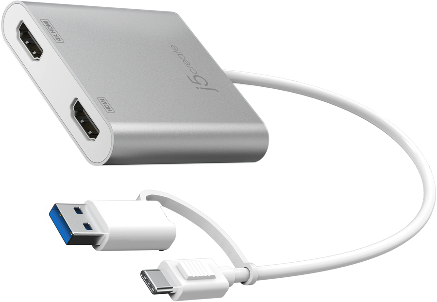 The JCA365 USB-C® to Dual HDMI™ Multi-Monitor Adapter acts as an external video card for your MacBook® or Windows® laptops. It allows you to add two additional displays through your USB-C® port, boosting your productivity by giving you more screen space to work from. One of the HDMI™ ports can output resolutions up to 4K, while the other can output resolutions up to 2048 x 1152.