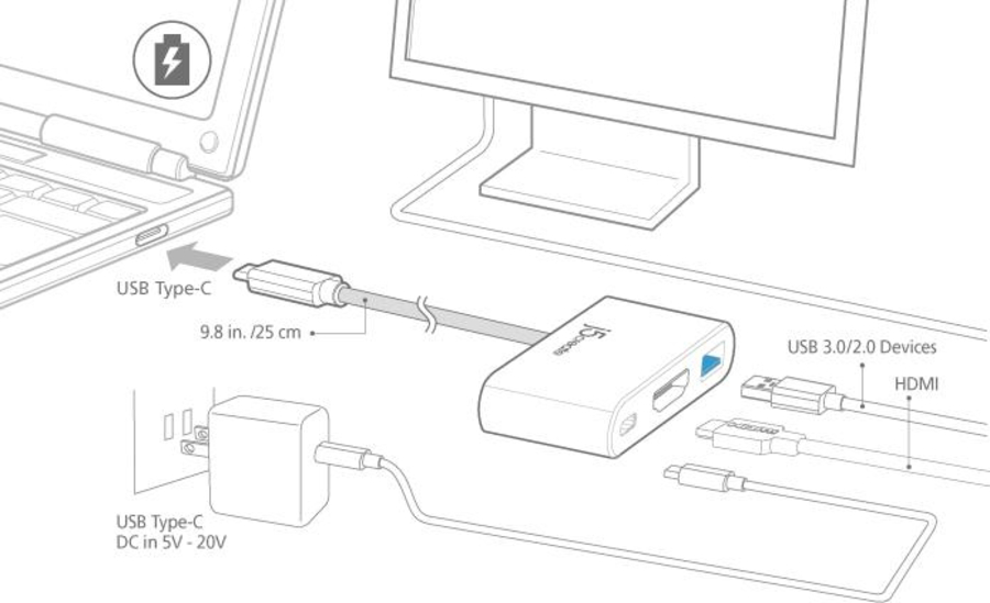 J5Create JCA379 USB-C to HDMI & USB 3.0 with Power Delivery