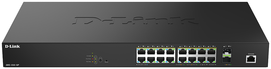 The DMS-1250 Series is D-Link’s newest family of Multi-Gigabit Ethernet smart switches. It provides multi-Gigabit connectivity, Power over Ethernet (PoE) capability, multiple management interfaces and advanced layer 2 features. The DMS-1250 Series provides a high-performace solution to expand your network and adapts to your business needs.