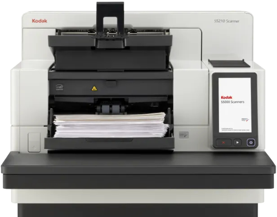 Best in class. Built to last. The KODAK S5210 Scanner is our fastest production document scanner with a sophisticated height adjustable floor stand for any operating environment. This scanner is designed for non-stop high-volume, mission-critical scanning applications where throughput, superior media handling and reliability are mandatory.