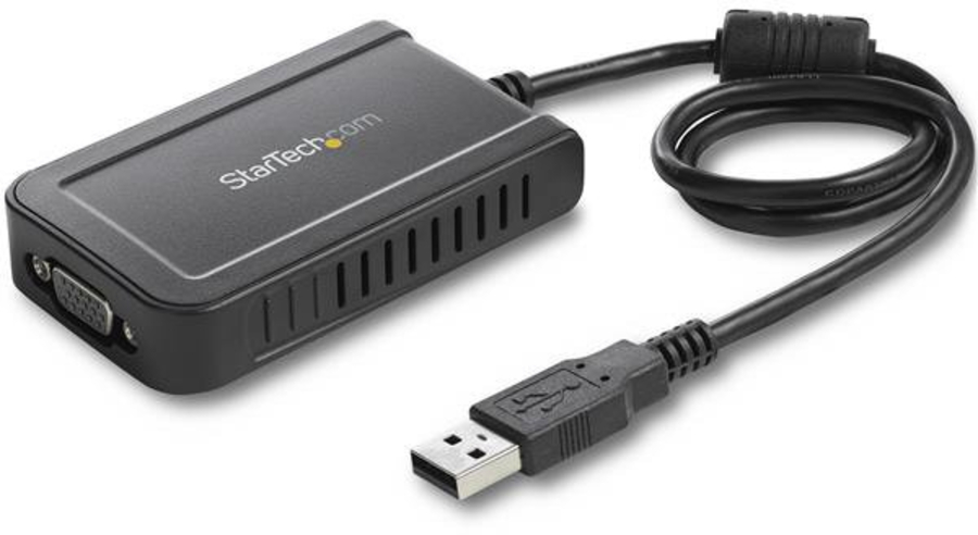 A cost-effective solution for systems that lack the outputs required for a multi-monitor setup, this high-performance USB to VGA adapter can be used to mirror your primary display and show the same image on both screens, or extend your desktop to double your workspace.