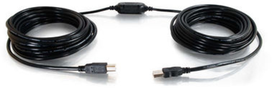 This 12m cable actively buffers the incoming and outgoing signals to ensure compliance with the USB 2.0 specification for electrical and timing minimums. Designed for use with most USB 2.0 or 1.1 devices like some interactive whiteboards, hard drives and printers. Both low and high speed USB devices will function equally well with this extension cable. The active chip is built into the middle of the cable so you can add a 5 meter USB cable when the active cable is used in combination with a USB wall plate. |