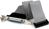 The PLATE25F16LP DB25 to IDC26 Parallel Port Bracket adds a DB25 parallel port to the rear panel of a low profile/small form factor computer, which connects to an IDC26 header connector on the motherboard.