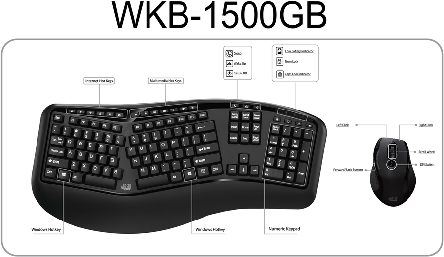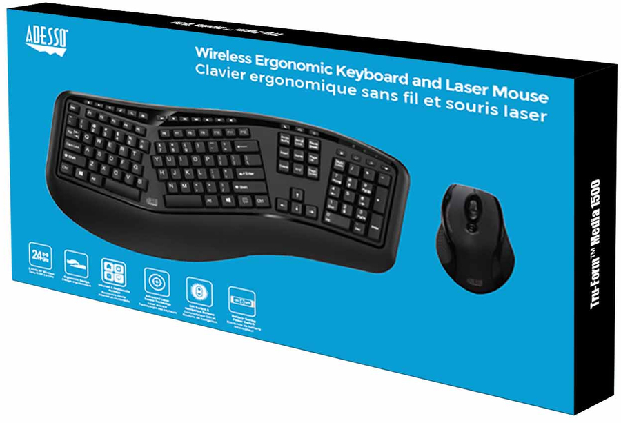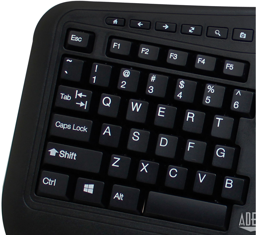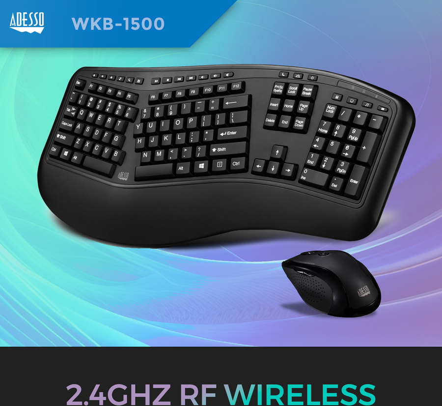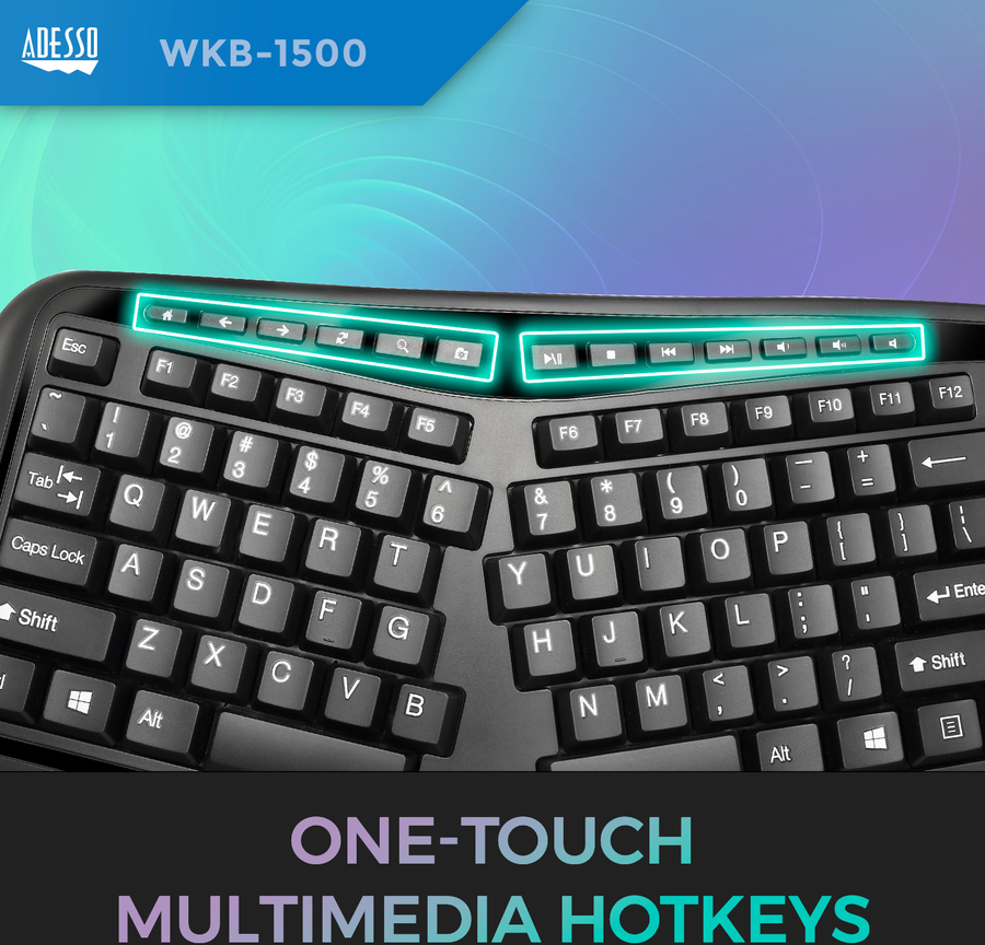 Ergonomic Design The design of this keyboard with splitted key zones and gently sloped shape encourages natural position of hands, wrists, and forearm in maximum comfort for long use.